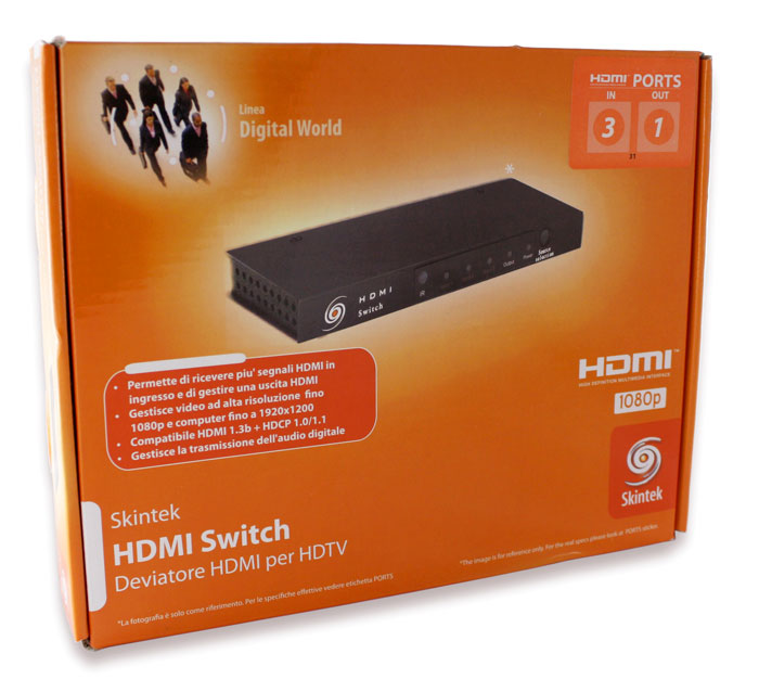 SKINTEK HDMI Switch 3 port: Switch HDMI a 3 porte in ingresso, 1 Uscita. Supporta risoluzione video 1080p e PC-1920x1200. Compatibile HDMI 1.3b + HDCP 1.01.1. Telecomando in dotazione.